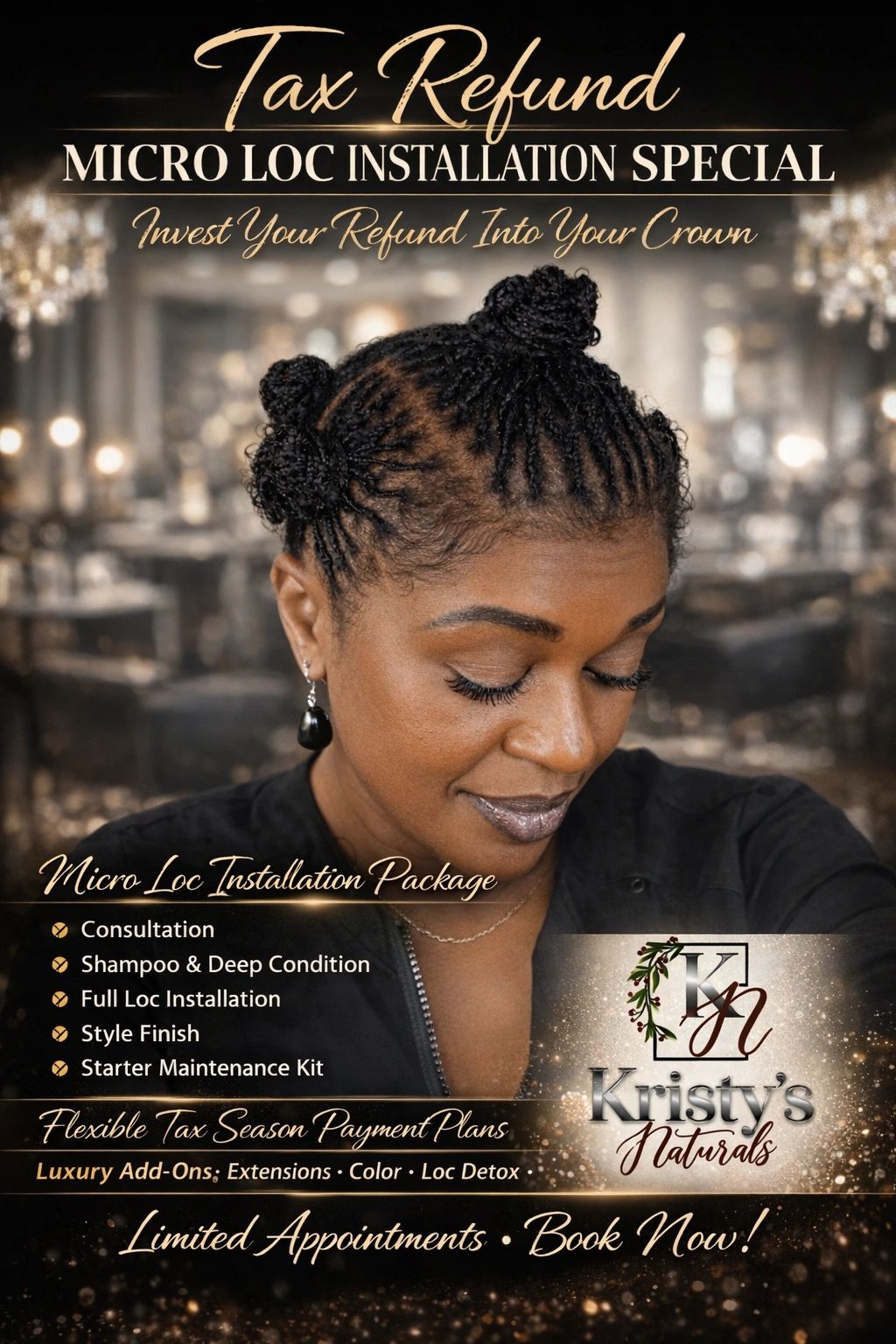 Kristy's Naturals is a comprehensive salon located in Clarksville, TN, offering a wide range of hair, skin & nail services including haircuts, coloring, styling, locs, braids, mani - pedis, & various beauty treatments.